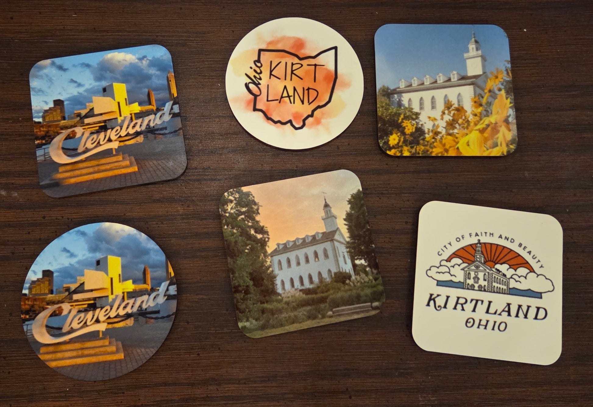These strong wood magnets can be placed on your fridge or other spot as a colorful reminder of your visit to Kirtland, Ohio.